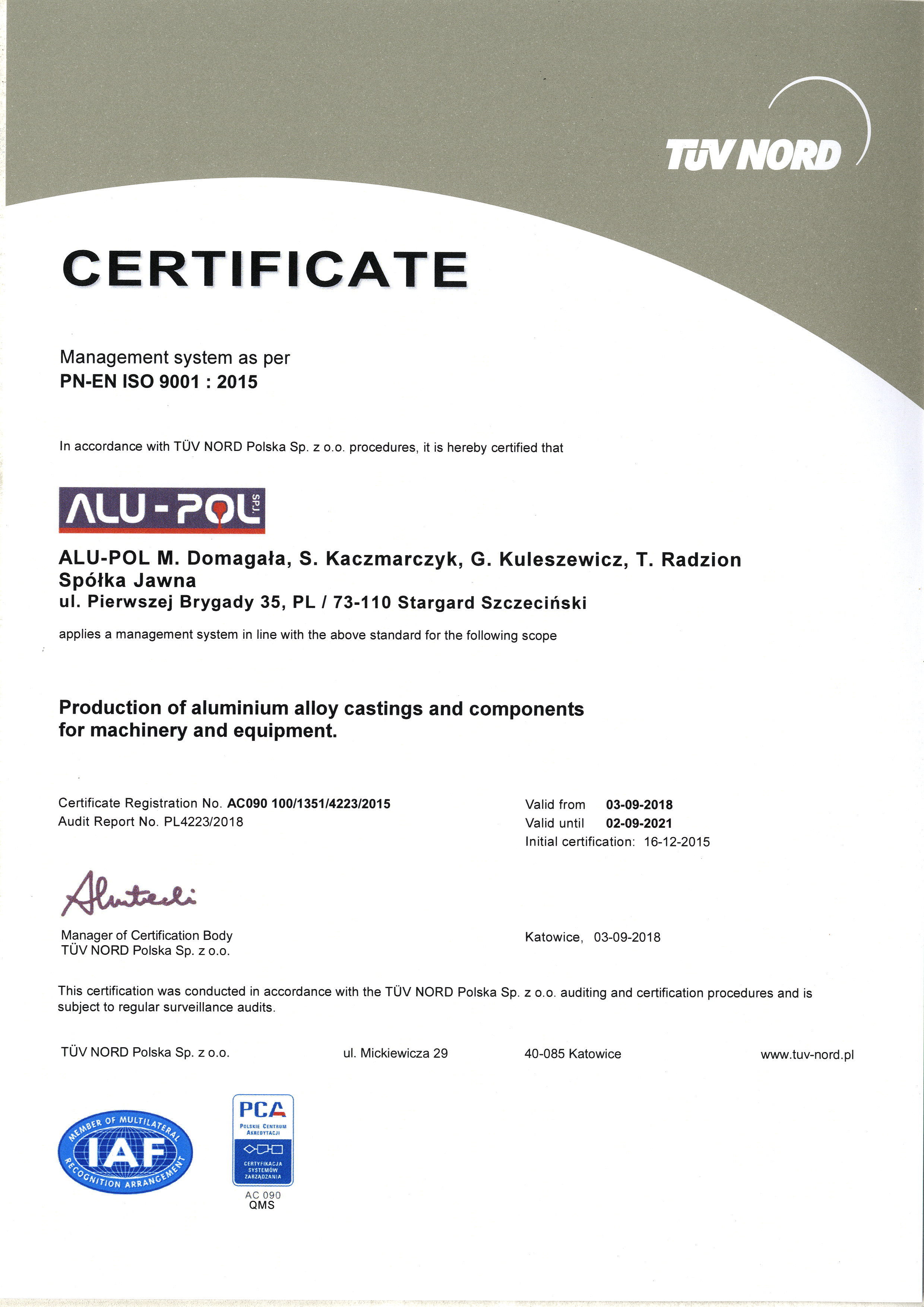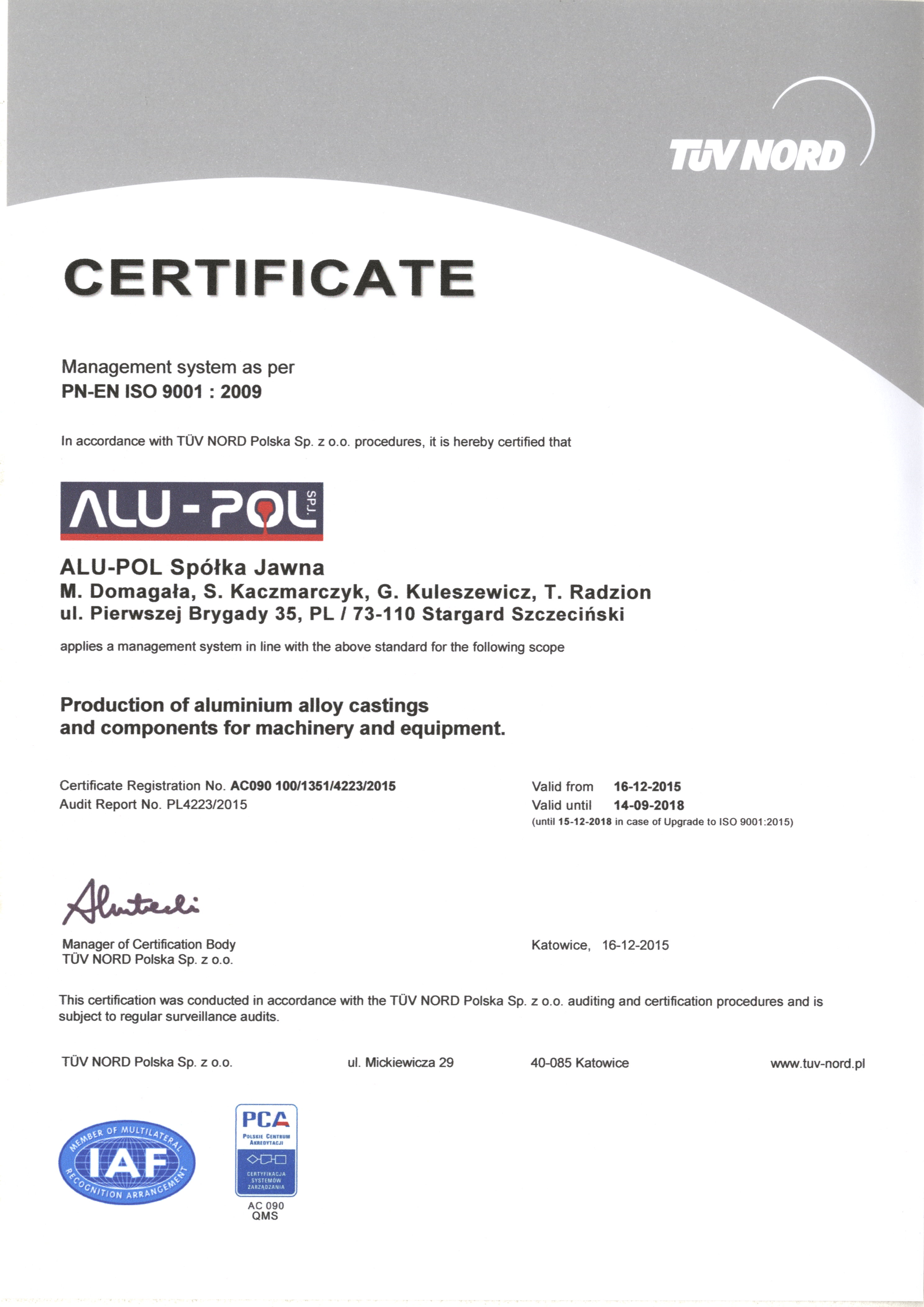 Alu-Pol Sp. z o.o. is a company manufacturing aluminum casts using two technologies: low-pressure form and die casting using gravity. Our casts are later used in energetic, automotive, food industry, construction etc.